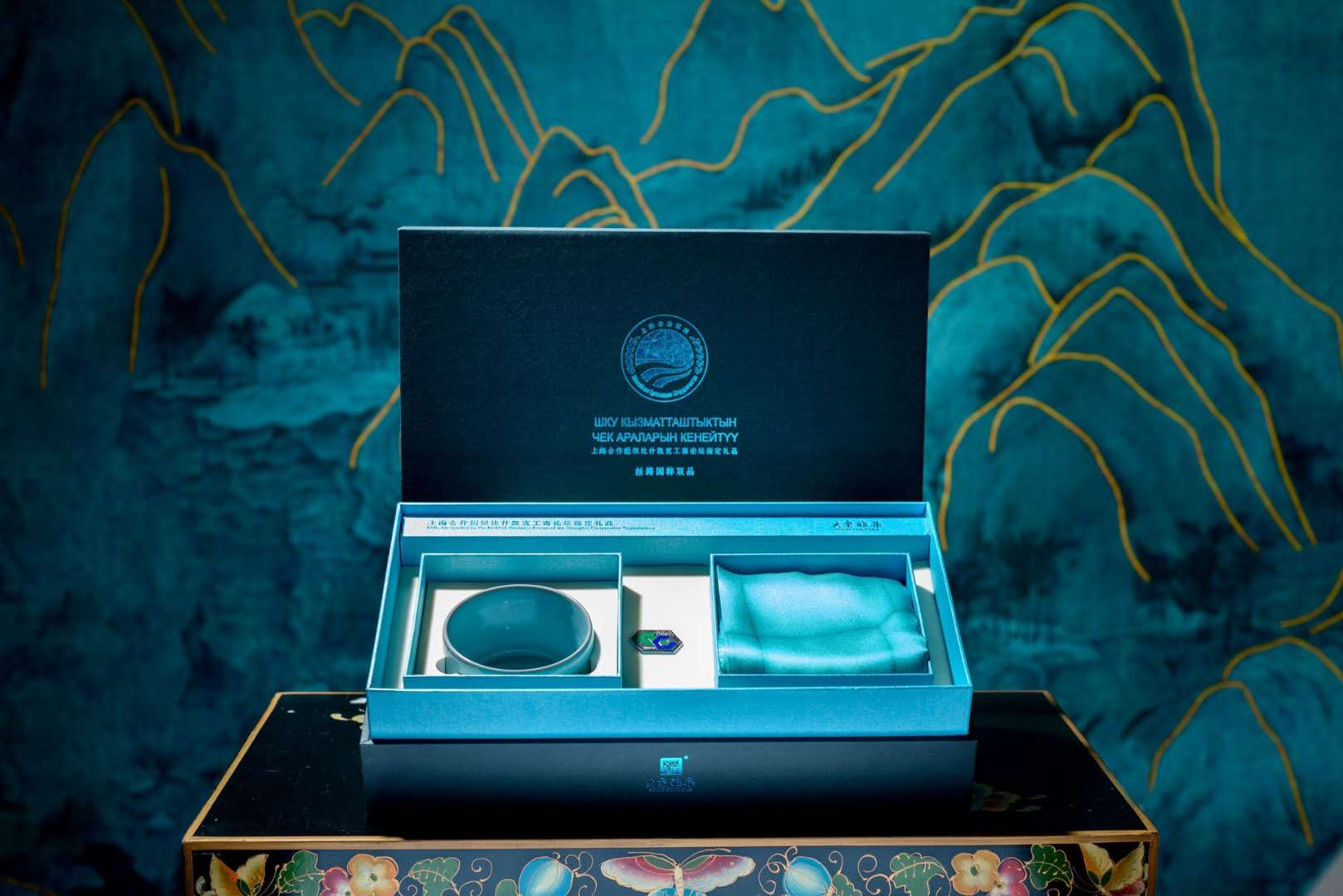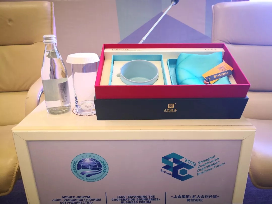峰会期间,有细心的人发现,一件件透着如雪山天空般的天青色的礼品展现在各国政要手中,成为闪耀在“上合比什凯克峰会”上的一缕清馨,担当着“一带一路”沿线国家的文化使者。