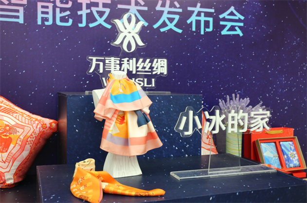 同时,现场“小冰的家”布置了众多丝绸衍生产品:智能笔记本、丝巾、抱枕、眼罩……共同搭建了一个人工智能与丝绸的“生态平台”,引得嘉宾注目。