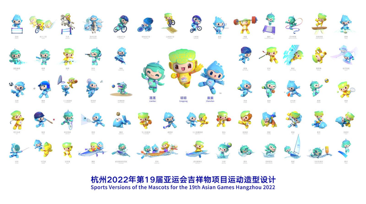 4月13日,杭州2022年第19届亚运会吉祥物项目运动造型设计线上发布。该设计是利用吉祥物对各体育项目比赛中最具代表性动作的定格与动画设计,是亚运视觉体系的重要组成部分。