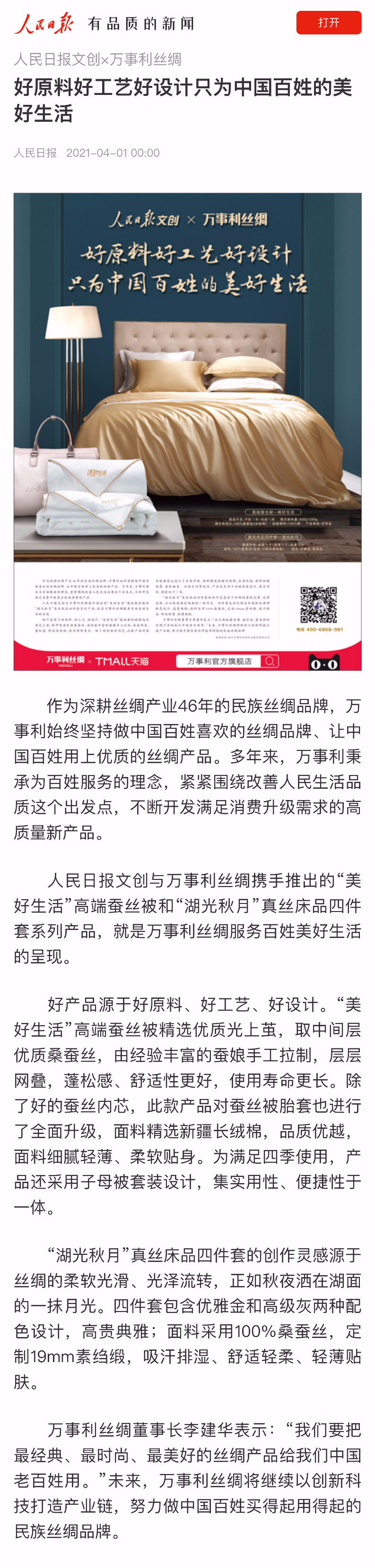 人民日报力挺国货!万事利好原料好工艺好设计,只为百姓美好生活