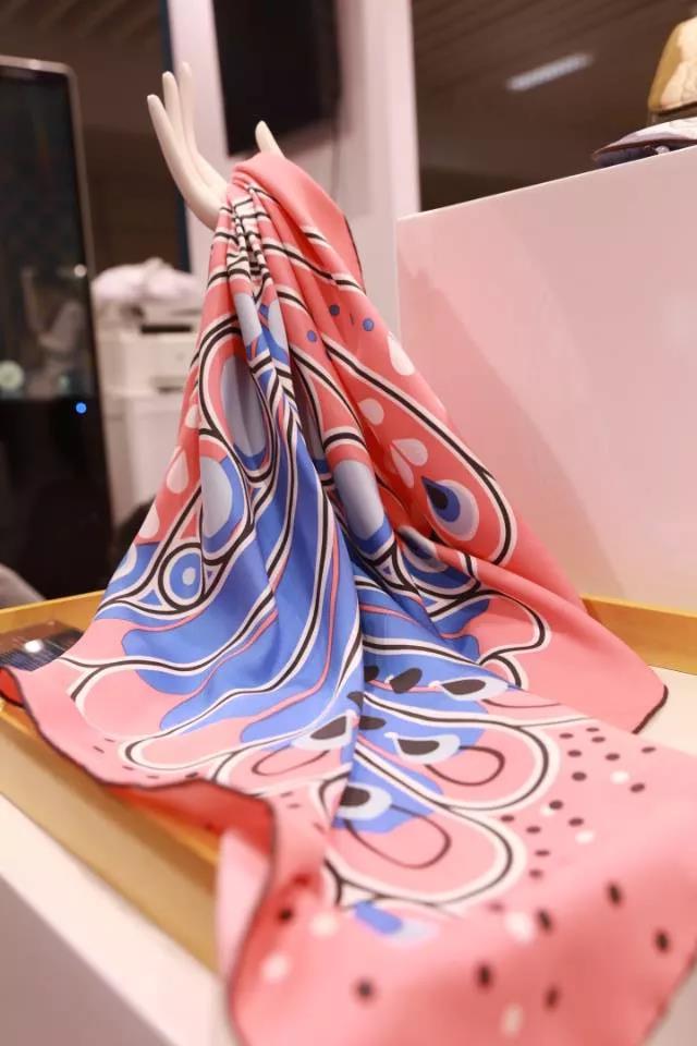 万事利丝绸于现场再现丝绸“缂丝”非遗工艺、丝绸艺术跨界、盛会国礼魅力……更有世界首款丝绸行业人工智能系统在线互动,丝巾设计一键定制。