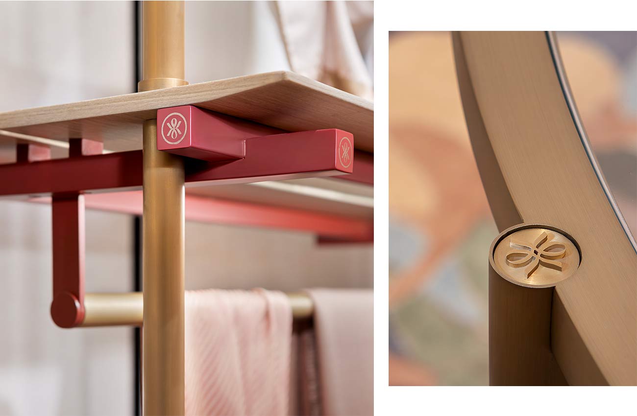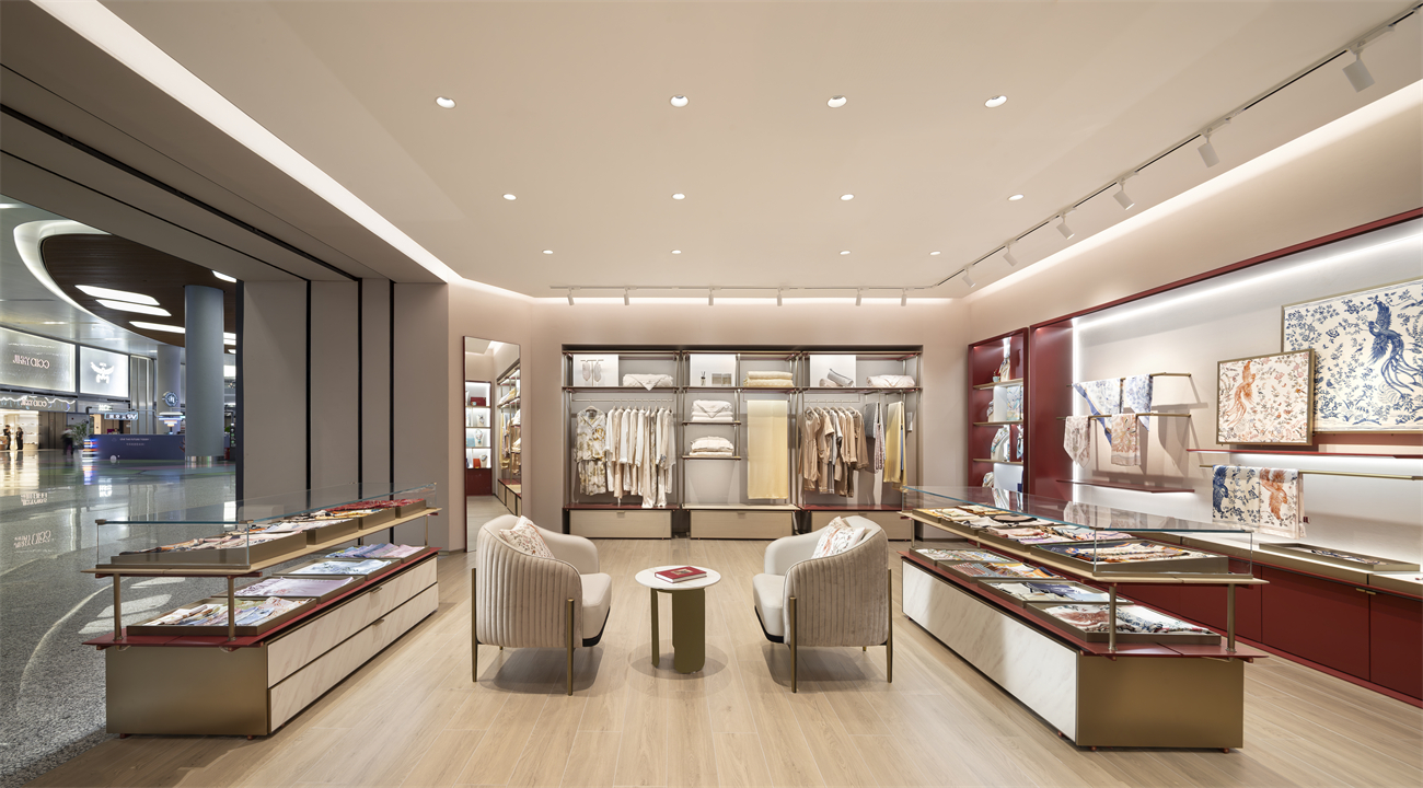 新店设计全面对标国际奢侈品牌标准,由国际知名空间设计团队操刀,其灵感来源于2010年上海世博会中国国家馆“东方之冠”,以宋代皇家专用色红色,和现代简约的金色为主色调,将宋代建筑美学中的“榫卯、斗拱、飞檐”等传统元素与当代设计美学结合,打造出东方韵国际范的丝绸艺术体验空间。